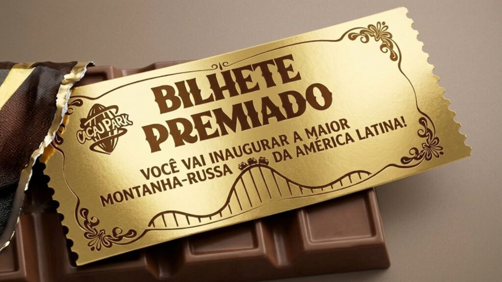Ação distribui 100 Golden Tickets e conecta produtos à inauguração do Cacau Park, prevista para 2027